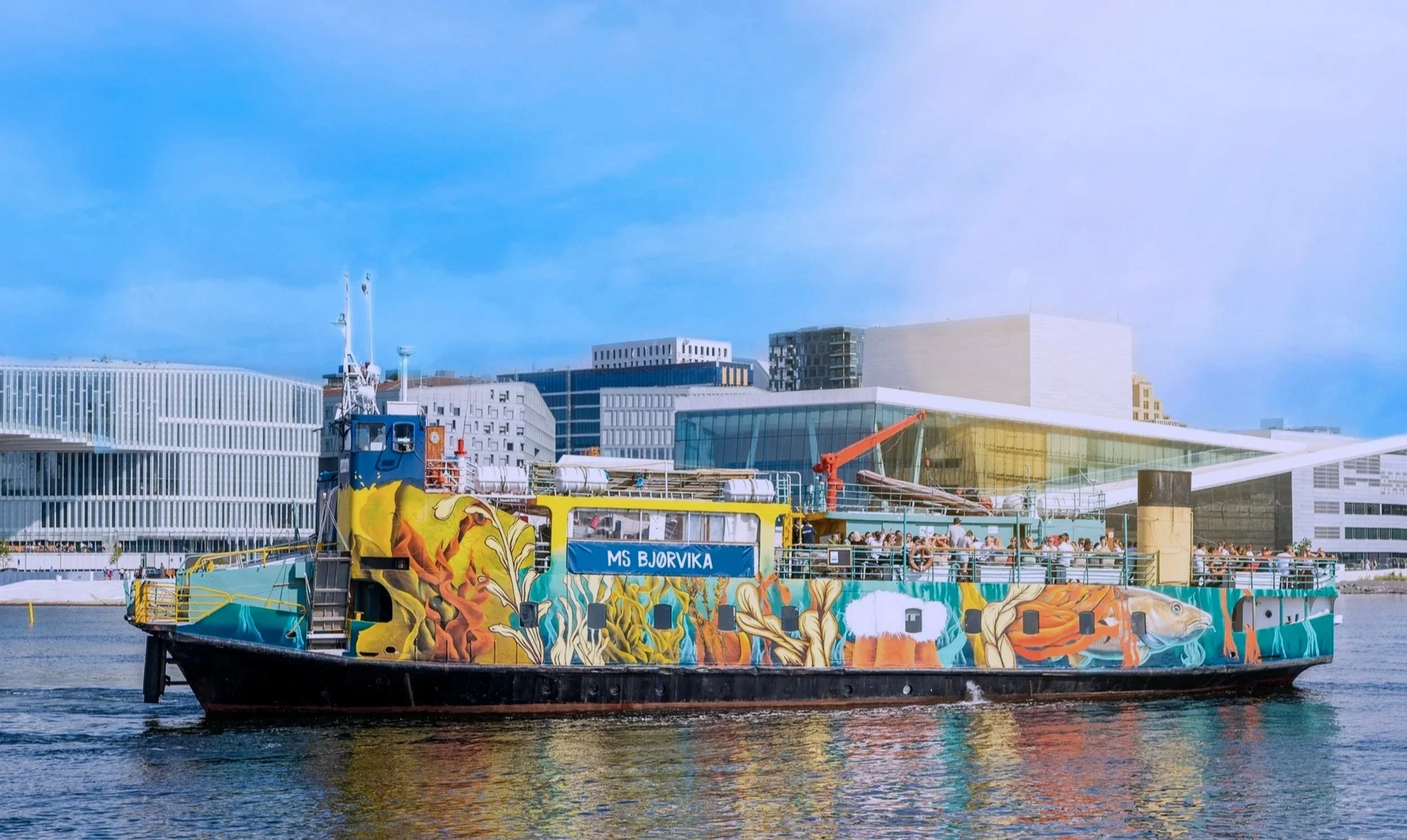 MS Bjørvika er en gammel ferge som er bygget om til festlokale. Båten holder til ved Operaen, men det er ikke nødvendigvis her vi kommer til å ha oppmøte. Følg med for mer informasjon, og sørg for å møte opp i god tid. Båten går fra kai til presis tid.